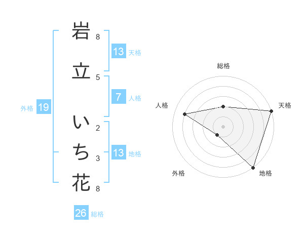 岩立 いち花さんを姓名の画数から五運を鑑定