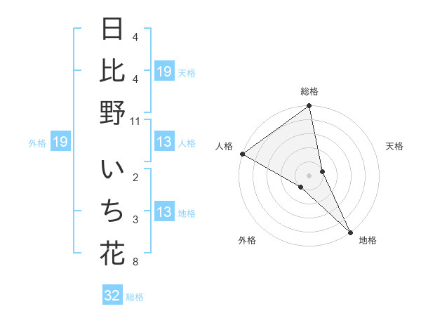日比野 いち花さんを姓名の画数から五運を鑑定