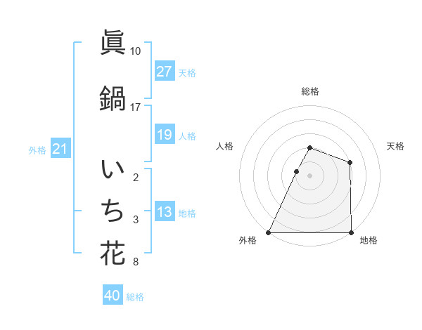 眞鍋 いち花さんの総格は40画の2点!