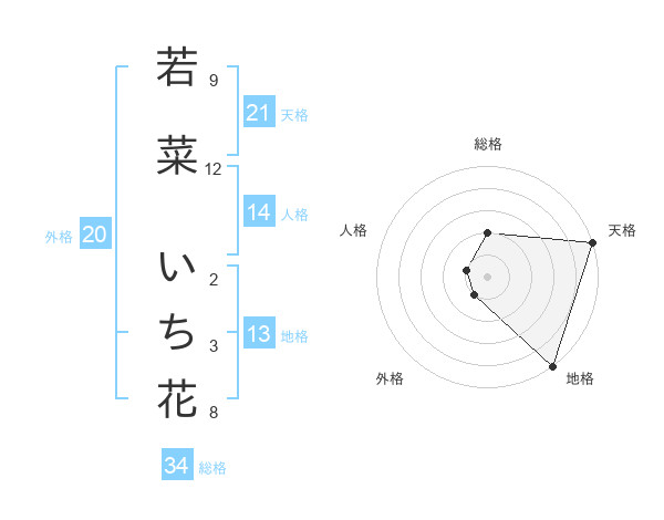 若菜 いち花さんを姓名の画数から五運を鑑定