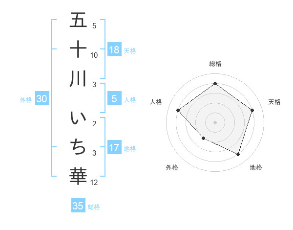 五十川 いち華さんを姓名の画数から五運を鑑定