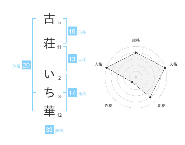古荘 いち華さんの総格は33画の4点!