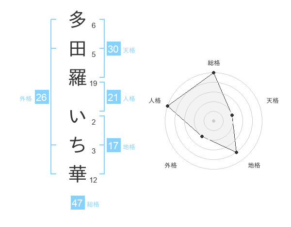 多田羅 いち華さんを姓名の画数から五運を鑑定