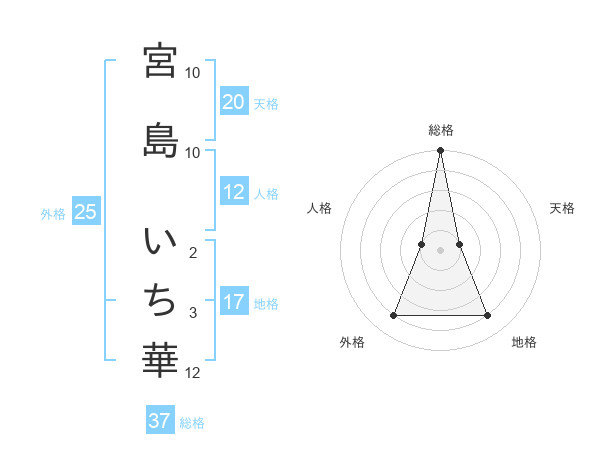 宮島 いち華さんの総格は37画の5点!