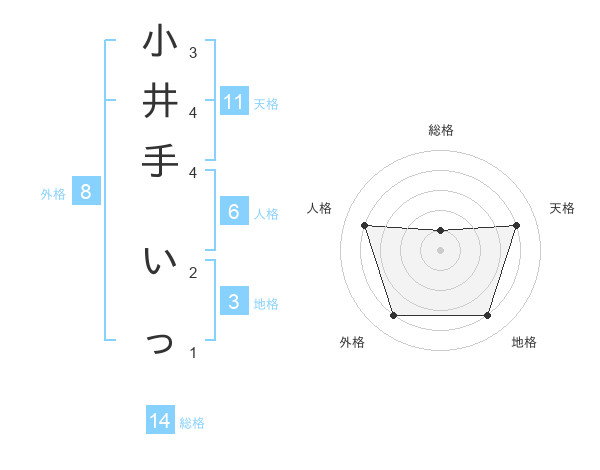 小井手 いっさんの天格は11画の4点!