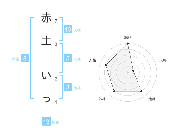 赤土 いっさんの総格は13画の5点!