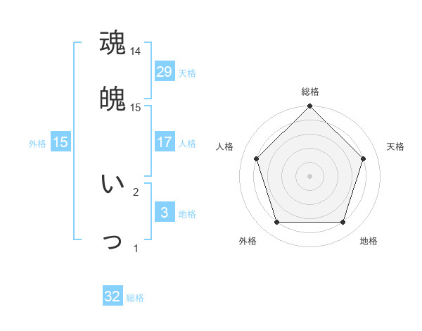魂魄 いっさんの天格は29画の4点!
