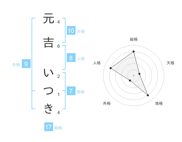 元吉 いつきさんの総格は17画の4点!