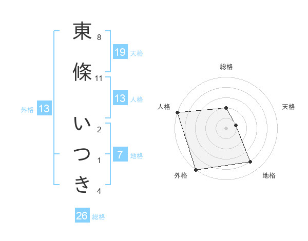 東條 いつきさんの外格は13画の5点!
