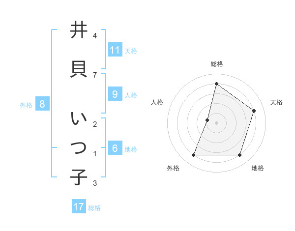 井貝 いつ子さんの総格は17画の4点!