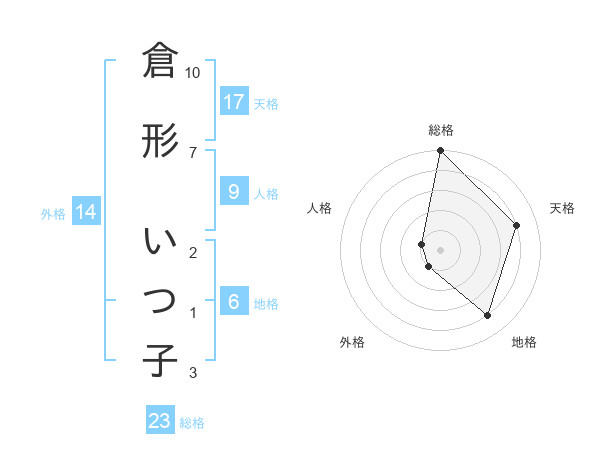 倉形 いつ子さんを姓名の画数から五運を鑑定