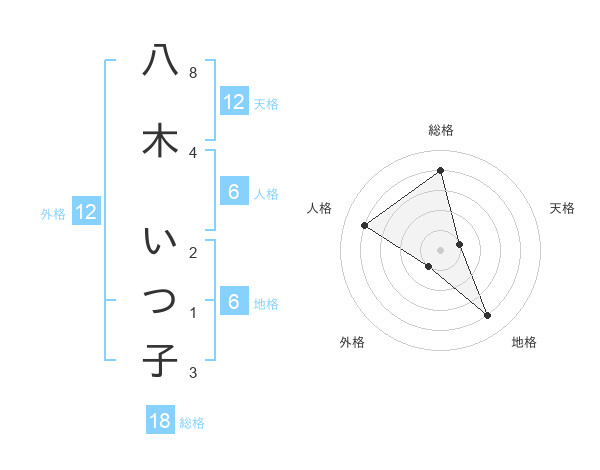 八木 いつ子さんの天格は12画の1点!