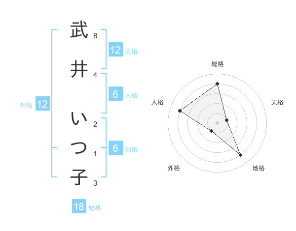 武井 いつ子さんの天格は12画の1点!