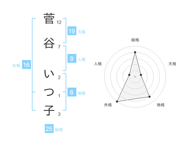 菅谷 いつ子さんを姓名の画数から五運を鑑定