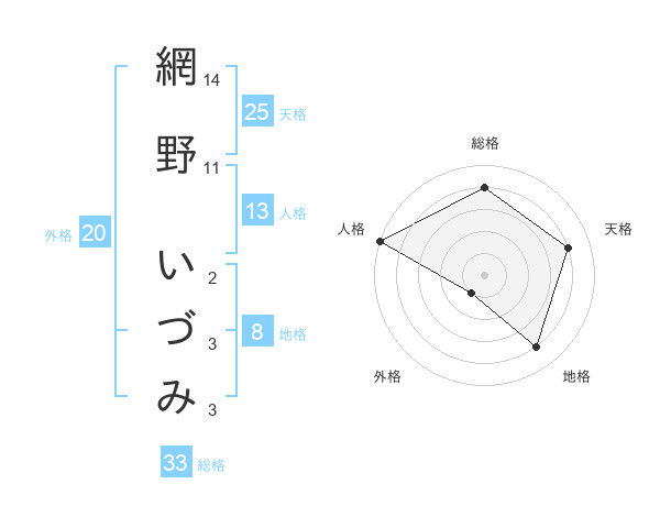 網野 いづみさんの総格は33画の4点