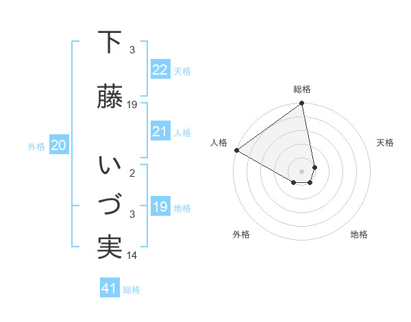下藤 いづ実さんを姓名の画数から五運を鑑定