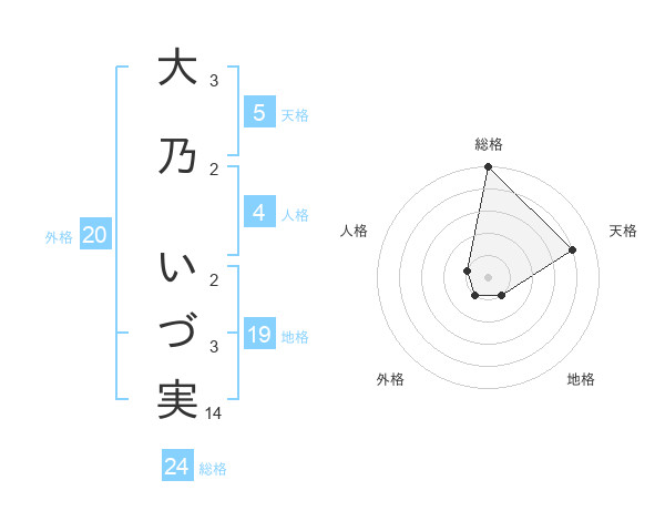 大乃 いづ実さんの総格は24画の5点!