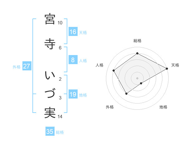 宮寺 いづ実さんを姓名の画数から五運を鑑定