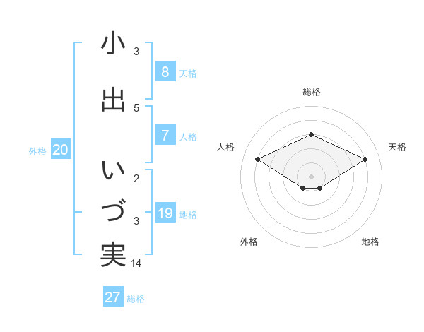 小出 いづ実さんの天格は8画の4点!