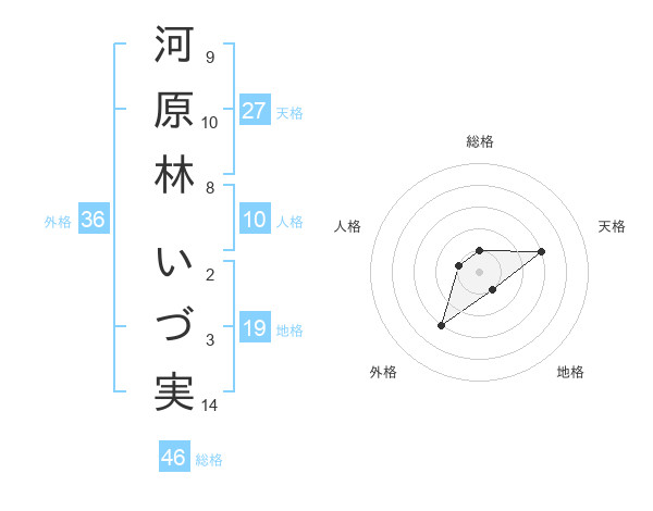 河原林 いづ実さんの総格は46画の1点!