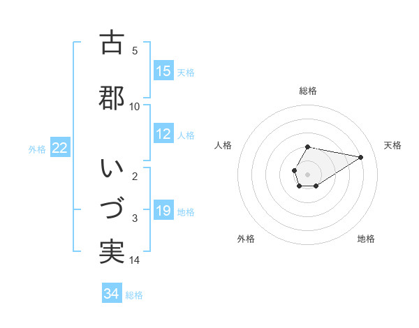 古郡 いづ実さんの天格は15画の4点!