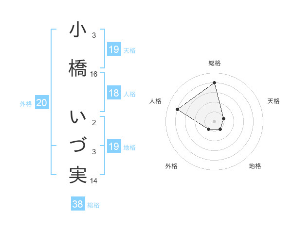 小橋 いづ実さんを姓名の画数から五運を鑑定