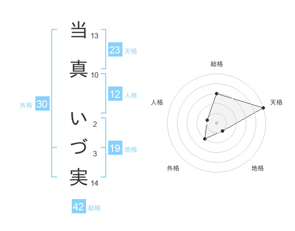 当真 いづ実さんを姓名の画数から五運を鑑定