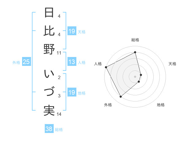 日比野 いづ実さんの総格は38画の4点!