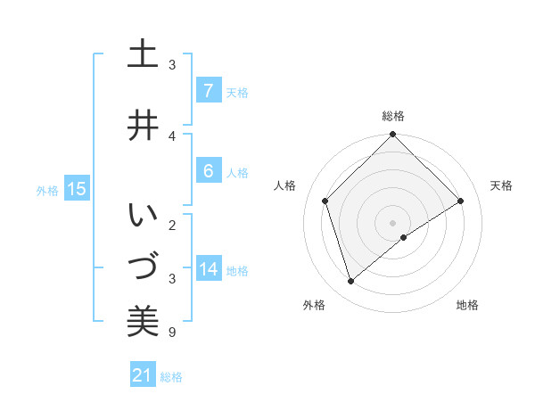 土井 いづ美さんの総格は21画の5点!