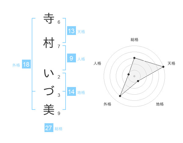寺村 いづ美さんを姓名の画数から五運を鑑定