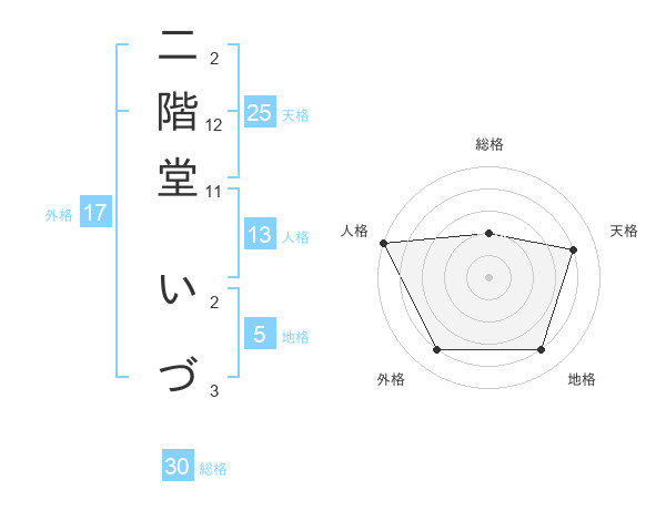 二階堂 いづさんの人格は13画の5点!