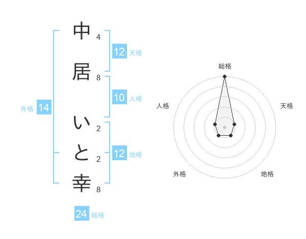中居 いと幸さんを姓名の画数から五運を鑑定