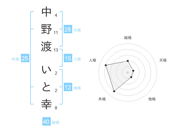 中野渡 いと幸さんを姓名の画数から五運を鑑定