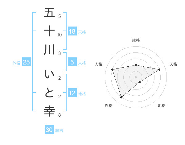 五十川 いと幸さんの総格は30画の2点!