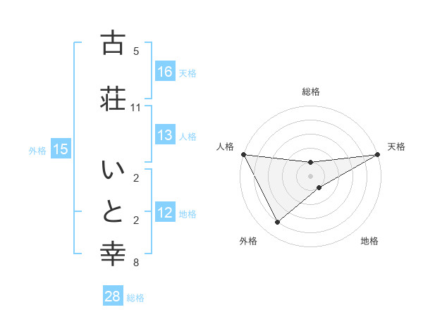 古荘 いと幸さんを姓名の画数から五運を鑑定