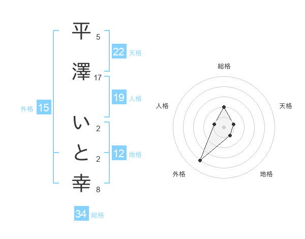 平澤 いと幸さんの総格は34画の2点!