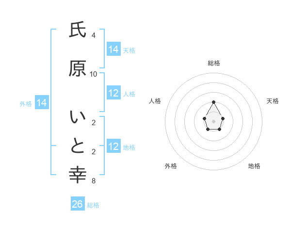 氏原 いと幸さんを姓名の画数から五運を鑑定