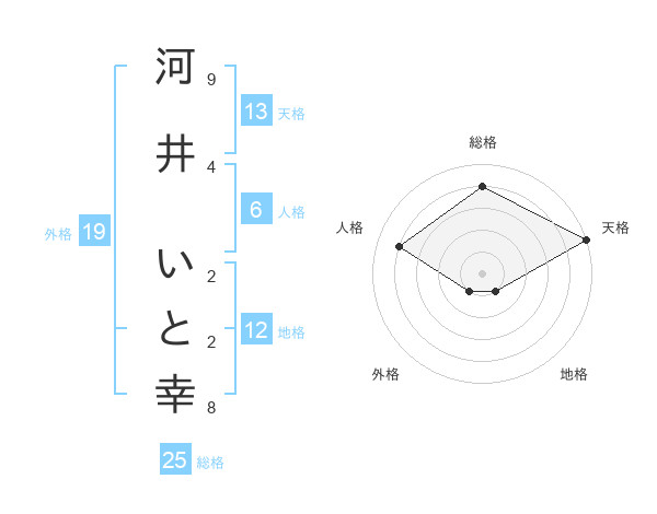 河井 いと幸さんを姓名の画数から五運を鑑定