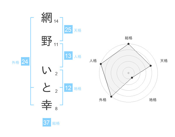 網野 いと幸さんを姓名の画数から五運を鑑定