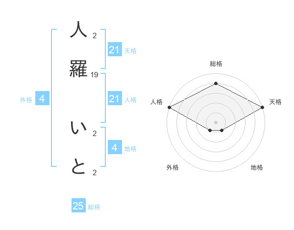 人羅 いとさんの総格は25画の4点!