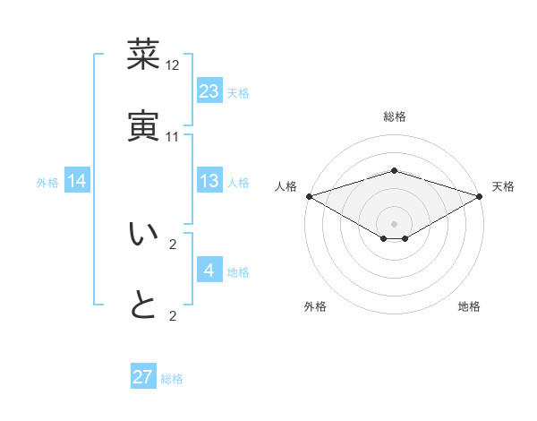 菜寅 いとさんの天格は23画の5点!