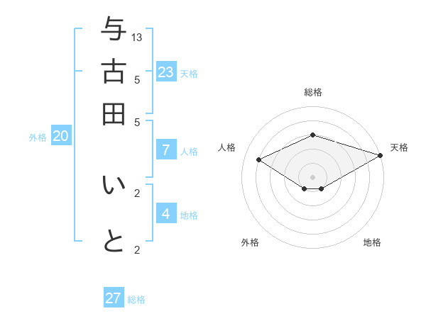 家系が持つ宿命的な運勢を表します。祖先から受け継いだ苗字ですので自分の力が及びません。家柄を象徴します。