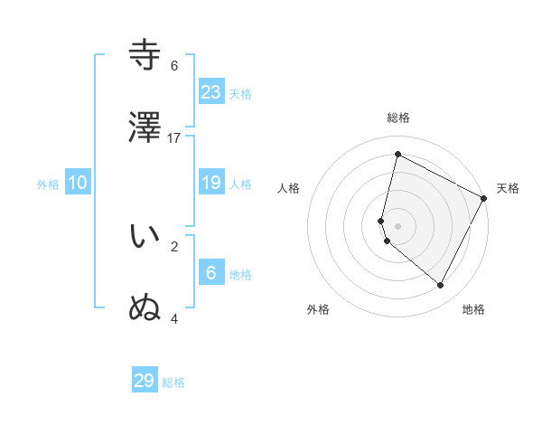 寺澤 いぬさんを姓名の画数から五運を鑑定