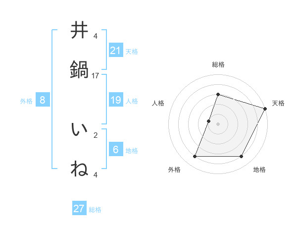 井鍋 いねさんの総格は27画の3点!