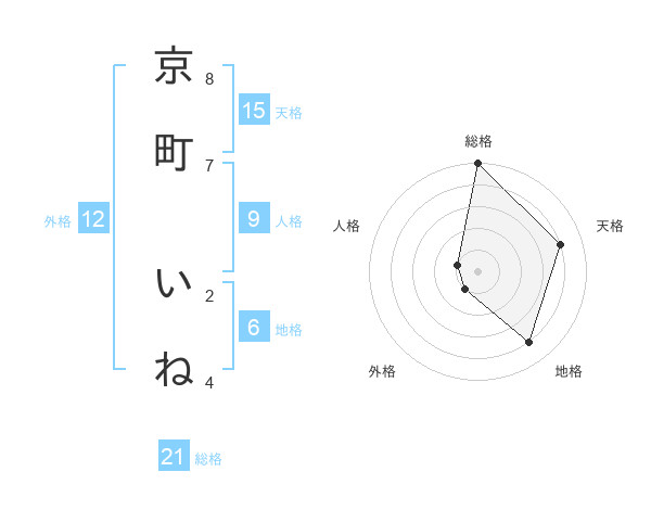 京町 いねさんの総格は21画の5点!