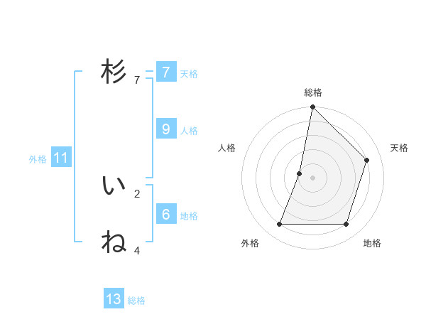 杉 いねさんの総格は13画の5点!