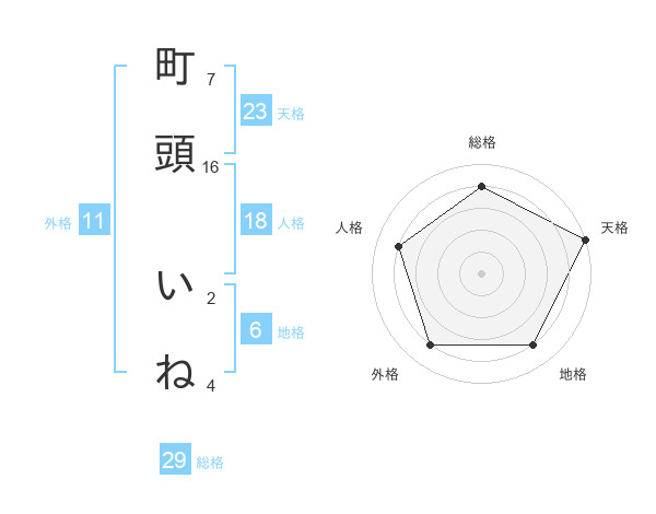 町頭 いねさんの総格は29画の4点!
