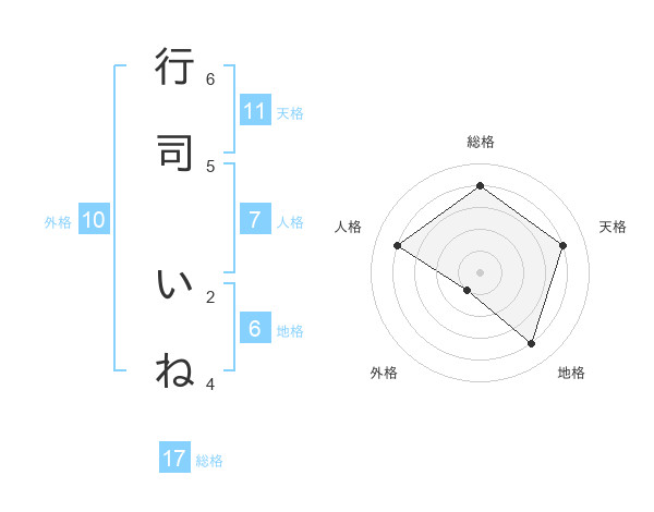 行司 いねさんの総格は17画の4点!