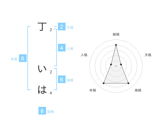 丁 いはさんの総格は8画の4点!