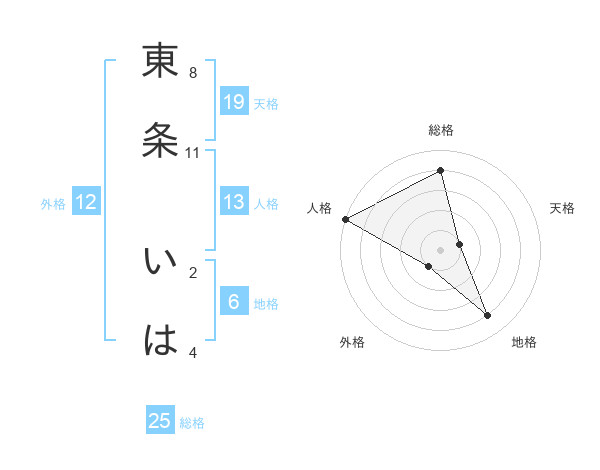 東条 いはさんの総格は25画の4点!